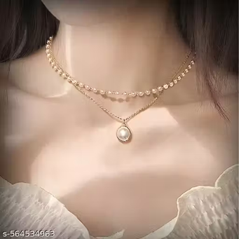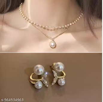 Name: Stylish Party, office Wear Combo of 2 Double Layered Shallow Necklace with Fancy Fishtail Korean Earring for Women and Girls