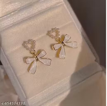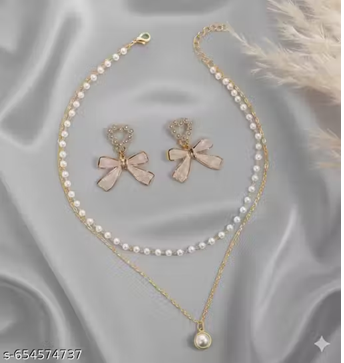 Name: MINEXA Office wear daily wear Combo of 2 Double Layered Shallow Necklace & white Bow Heart Design Earring | for Women and Girls