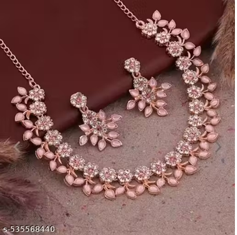Name: Jewellery Rose Gold & Gold Polished With White & Blue AD Choker Necklace Set with Matching Earrings.