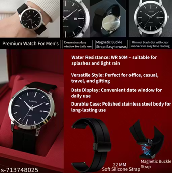 Name: Lakhya Premium Men Watch / Magnetic Buckle Silicone Strap / Black Dial Analog Watch